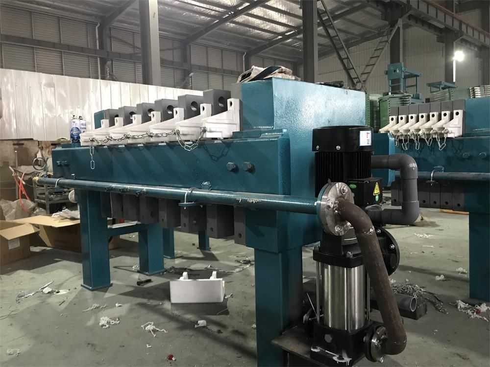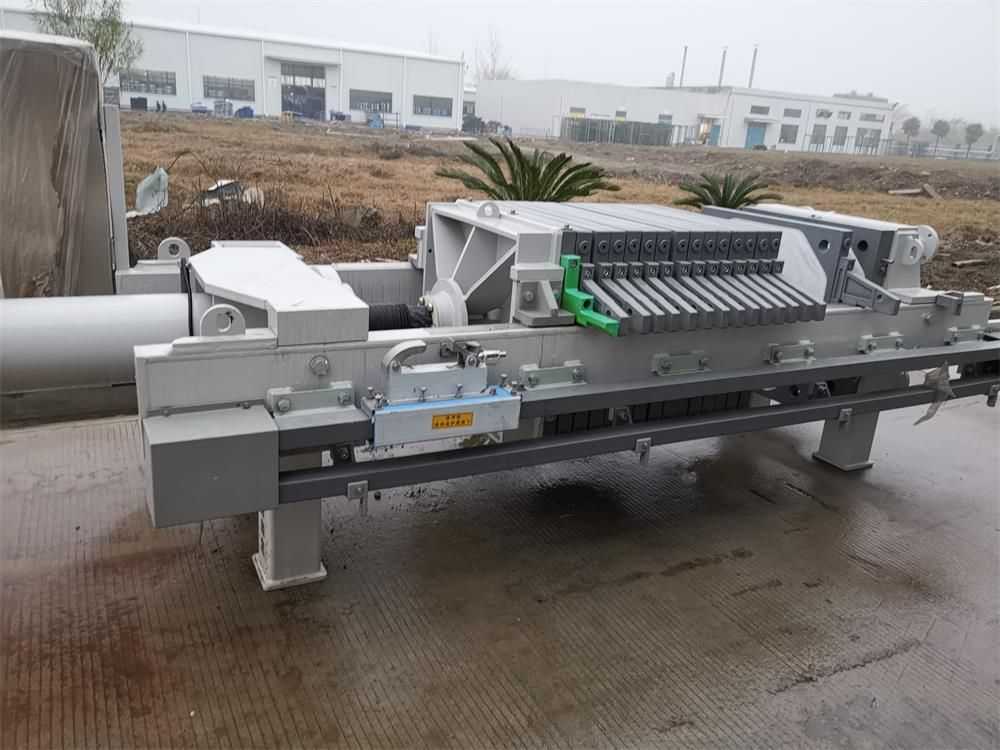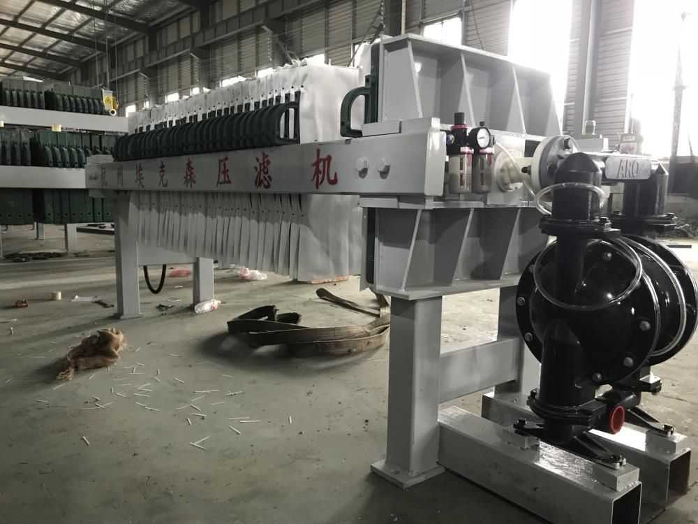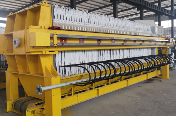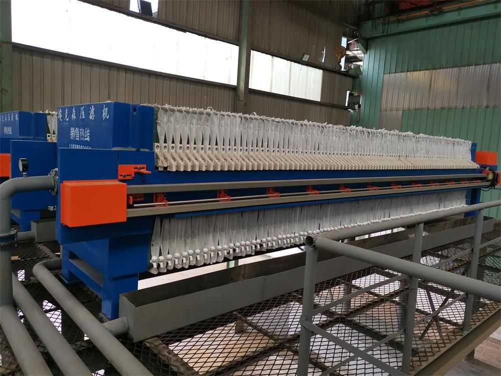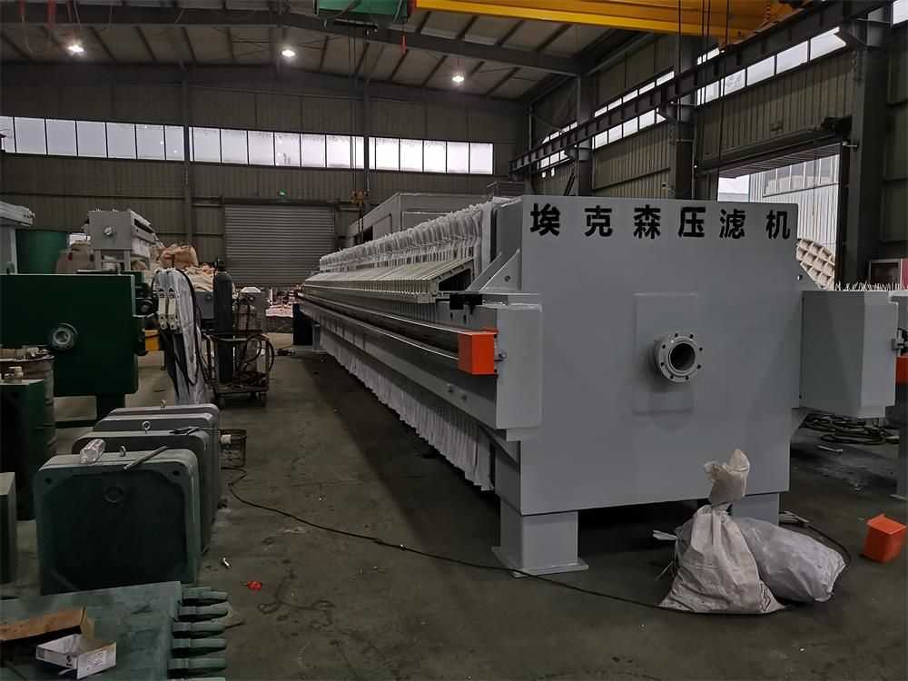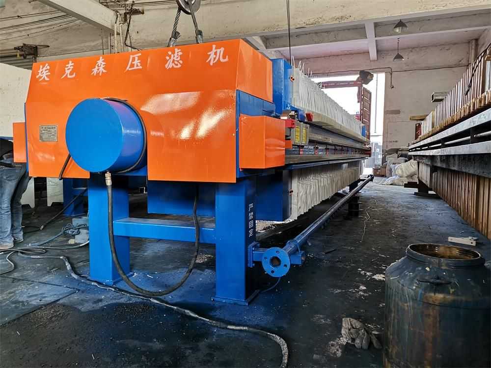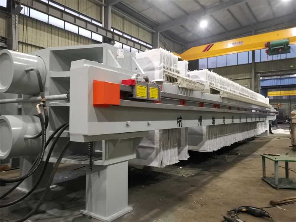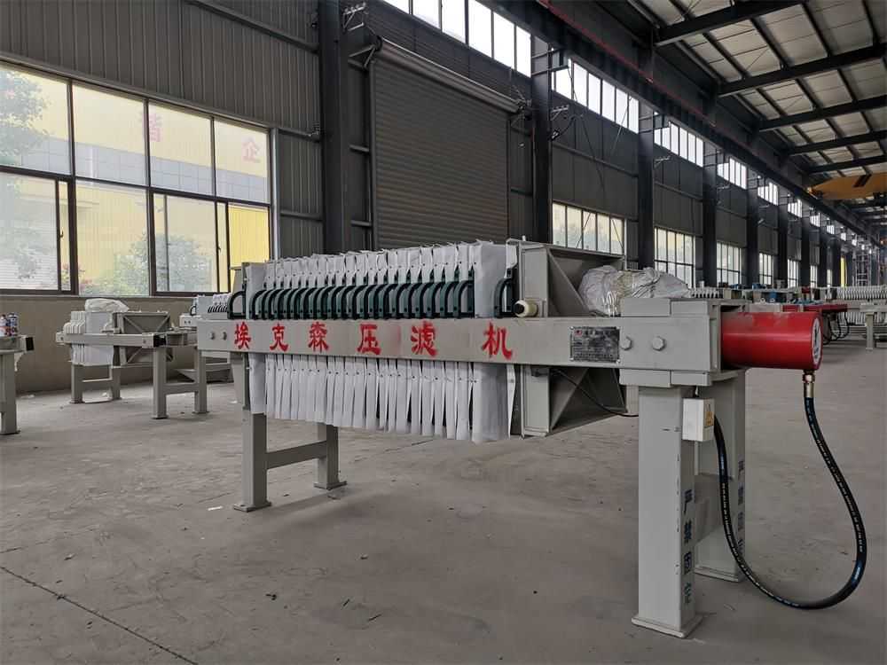 隔膜壓濾機和常規箱式壓濾機的主要區別在于,在濾板的兩側都增加了兩個彈性膜(復合橡膠膜是一個整體式膜。在操作期間,當進料完成時,將高壓流體介質注入膜中,并使整個膜膨脹以過濾濾餅,以進一步使濾餅脫水,這是壓力過濾。在隔膜壓濾機運行期間,液壓系統使用液壓油作為壓力載體來傳遞內部壓力。